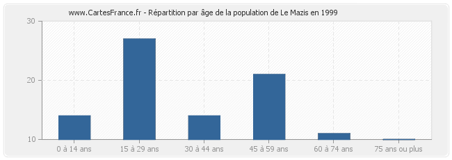 - Population de Le Mazis de 15 à 29 ans : 27 habitants