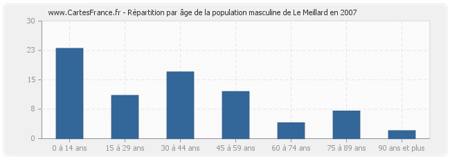 - Hommes de 0 à 14 ans habitant Le Meillard : 23