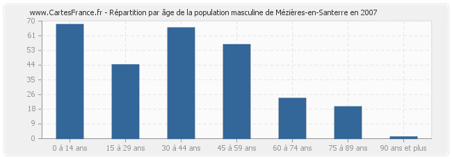 Répartition de la population masculine de Mézières-en-Santerre par âge en 2007 :