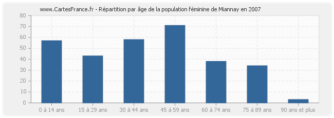 - Femmes de 45 à 59 ans habitant Miannay : 71