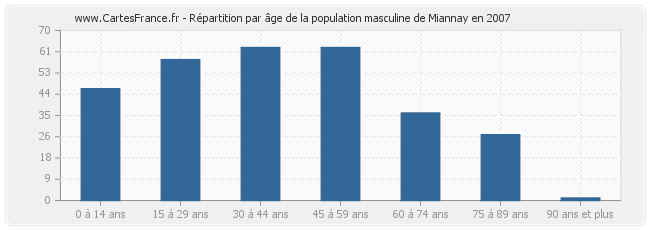 - Hommes de 45 à 59 ans habitant Miannay : 63