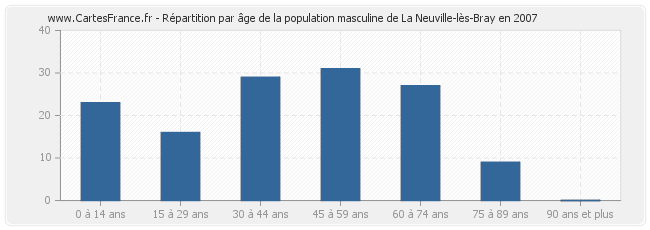 - Hommes de 45 à 59 ans habitant La Neuville-lès-Bray : 31
