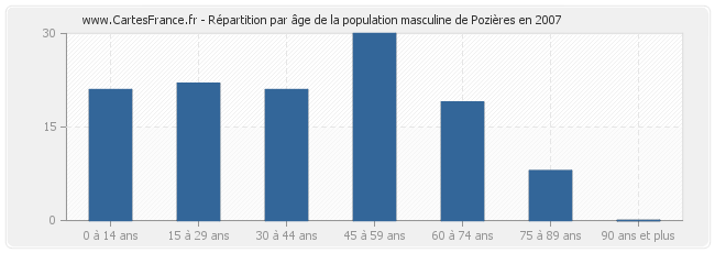 Répartition de la population masculine de Pozières par âge en 2007 :