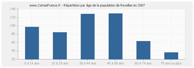 - Population de Revelles de 30 à 44 ans : 128 habitants