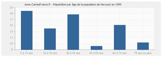 - Population de Vercourt de 0 à 14 ans : 19 habitants