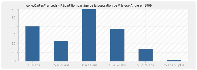 - Population de Ville-sur-Ancre de 30 à 44 ans : 70 habitants