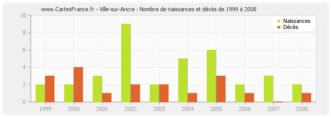 Ville-sur-Ancre : naissances et décès de 1999 à 2008