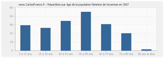 - Femmes de 45 à 59 ans habitant Voyennes : 72