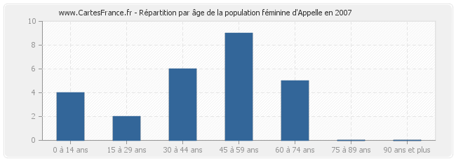 Répartition de la population féminine d'Appelle par âge en 2007 :