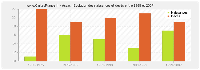La population d'Assac était de 155 habitants en 2007, 154 habitants en 1999, 161 habitants en 1990, 193 habitants en 1982, 194 habitants en 1975 et 235 habitants en 1968.