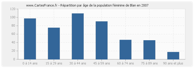 - Femmes de 30 à 44 ans habitant Blan : 109