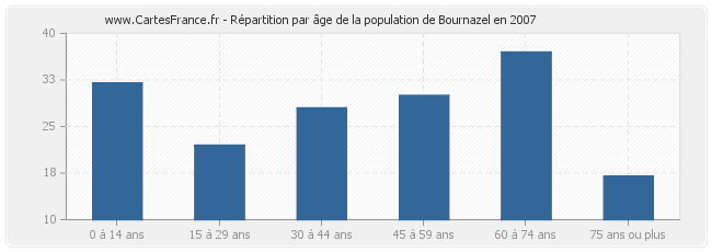 - Population de Bournazel de 60 à 74 ans : 37 habitants