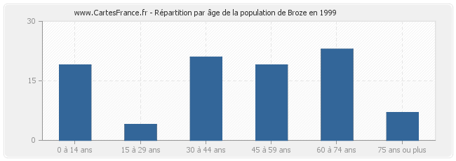 - Population de Broze de 60 à 74 ans : 23 habitants