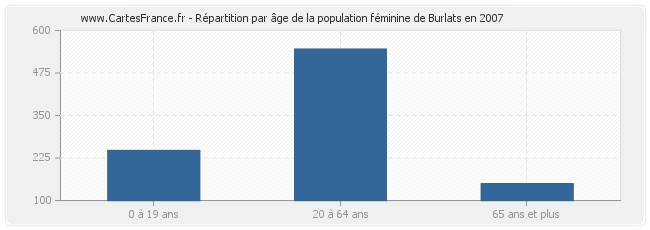Répartition de la population féminine de Burlats par âge en 2007 :