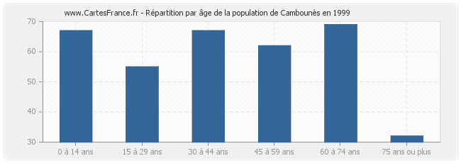 - Population de Cambounès de 60 à 74 ans : 69 habitants
