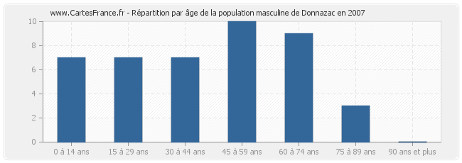 - Hommes de 0 à 14 ans habitant Donnazac : 7