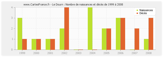 - Le Dourn en 2008 : 1 naissances et 3 décès