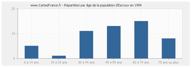- Population d'Escroux de 60 à 74 ans : 15 habitants