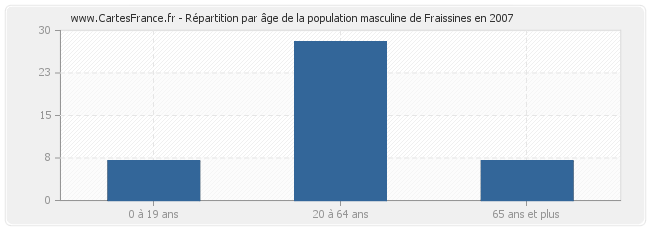 - Hommes de 20 à 64 ans habitant Fraissines : 28