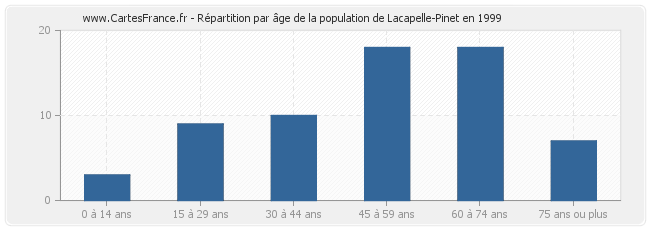 Répartition de la population de Lacapelle-Pinet par âge en 1999 :
