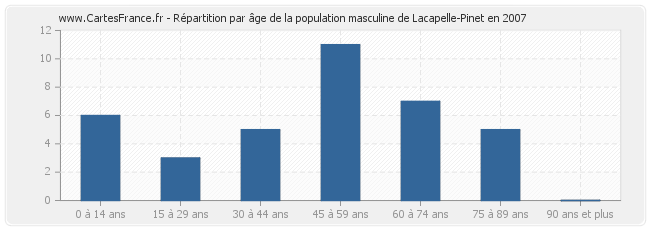 - Hommes de 45 à 59 ans habitant Lacapelle-Pinet : 11