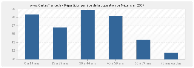 - Population de Mézens de 30 à 44 ans : 88 habitants