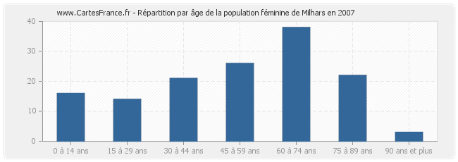 - Femmes de 60 à 74 ans habitant Milhars : 38