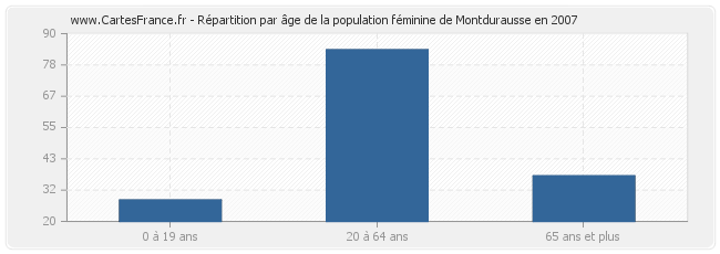 Répartition de la population féminine de Montdurausse par âge en 2007 :