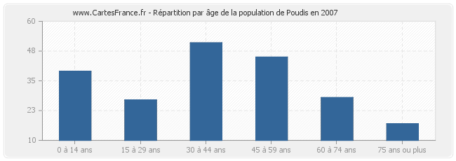- Population de Poudis de 30 à 44 ans : 51 habitants