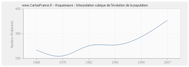 Cette courbe reprend l'historique de la population de Roquemaure de 1968 à 2007 en interpolation cubique. Ceci permet d'obtenir plus précisément la population de la commune de Roquemaure les années ou aucun recensement n'a été effectué.
