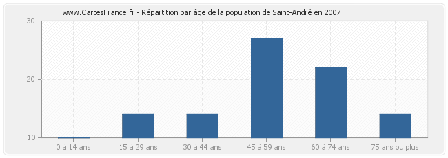 - Population de Saint-André de 45 à 59 ans : 27 habitants