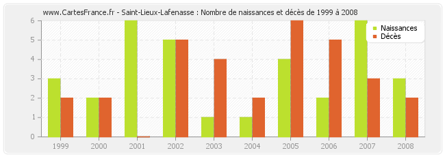 Saint-Lieux-Lafenasse : naissances et décès de 1999 à 2008