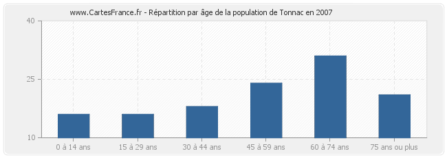 - Population de Tonnac de 60 à 74 ans : 31 habitants