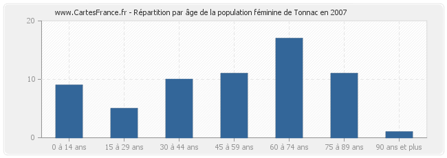 - Femmes de 60 à 74 ans habitant Tonnac : 17