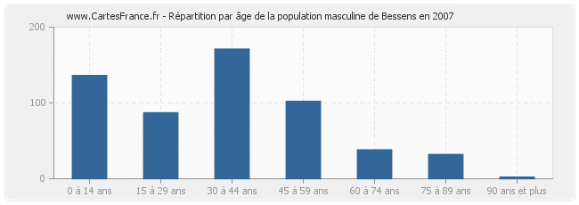 Répartition de la population masculine de Bessens par âge en 2007 :