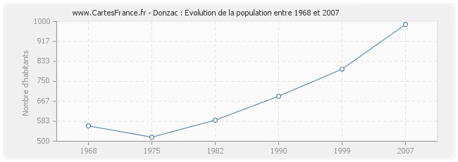 - Population de Donzac en 2007 : 988 habitants