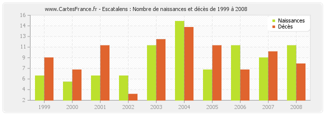 - Escatalens en 2008 : 11 naissances et 8 décès