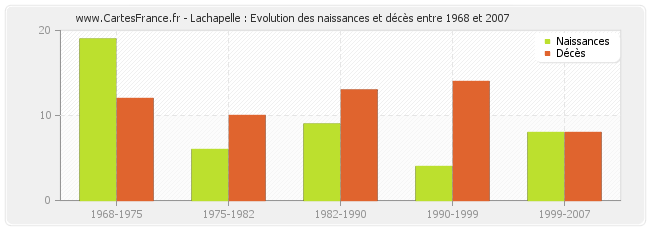 Lachapelle : évolution des naissances et décès de 1968 à 2007