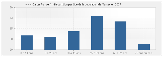 - Population de Marsac de 45 à 59 ans : 44 habitants