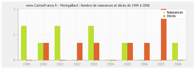 - Montgaillard en 2008 : 1 naissances et 0 décès
