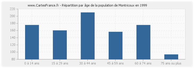 - Population de Montricoux de 60 à 74 ans : 169 habitants