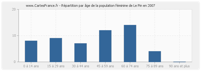 Répartition de la population féminine de Le Pin par âge en 2007 :