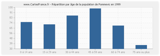 - Population de Pommevic de 45 à 59 ans : 98 habitants