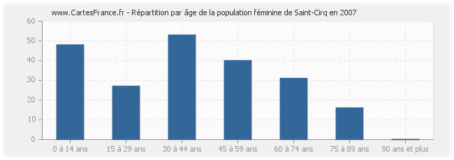 Répartition de la population féminine de Saint-Cirq par âge en 2007 :