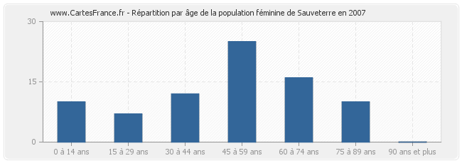 Répartition de la population féminine de Sauveterre par âge en 2007 :