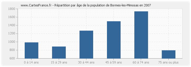 - Population de Bormes-les-Mimosas de 60 à 74 ans : 1 733 habitants