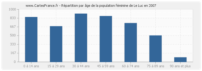 Répartition de la population féminine de Le Luc par âge en 2007 :