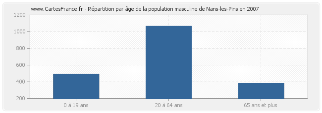 Répartition de la population masculine de Nans-les-Pins par âge en 2007 :