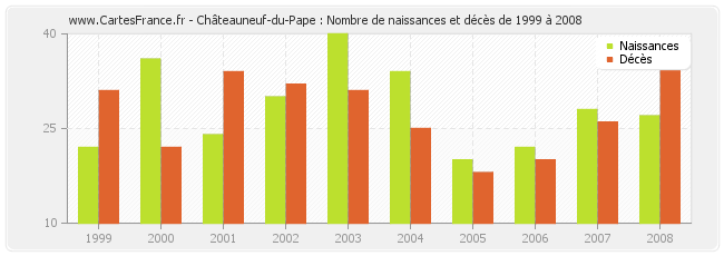- Châteauneuf-du-Pape en 2008 : 27 naissances et 39 décès
