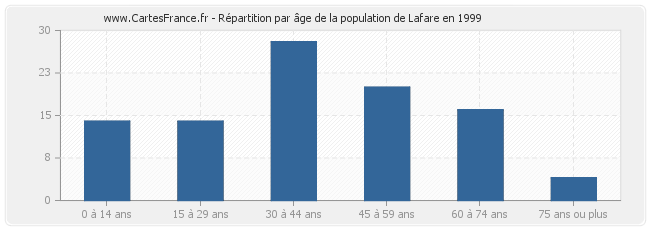 - Population de Lafare de 30 à 44 ans : 28 habitants
